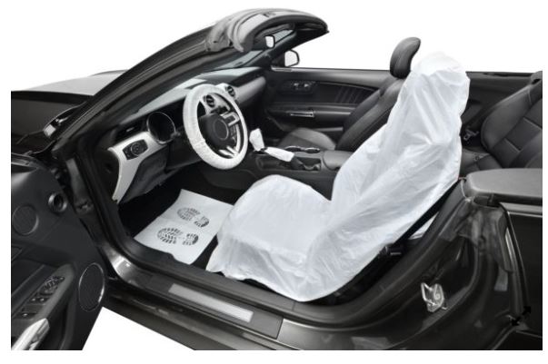 Praktisk sett i plastpose som inneholder: 1 stk. setetrekk 13 My, 1 gulvmatte 38,5x50cm., 1 girkuletrekk, 1 rattrekk med strikk, 1 håndbrekktrekk. Leveres 100 sett i kartongen. Et sett er pakket i tynn plast som passer i ordremappen og kan følge med arbeidsordren.