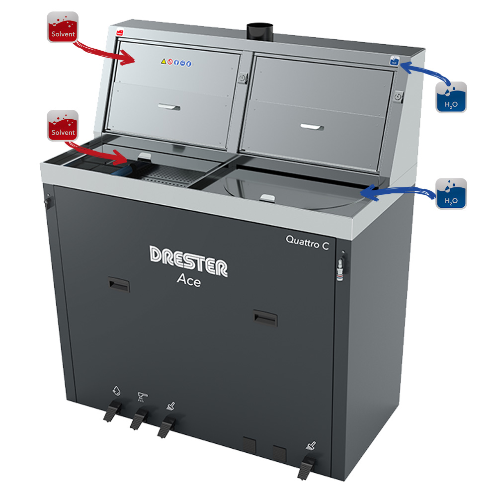 Helt rustfritt løsemiddel og automatiske vaskesoner, enkle å holde rene.