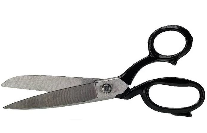 For klipping av polyester, stoff, papp, lær etc. Blanke skjær. Svarte håndtak