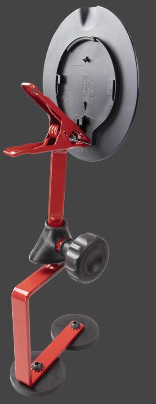 Stålklemme med sterk fjær. Holder sikkert små deler som gassdører, dørhåndtak, trimmer, deksler, plater etc.