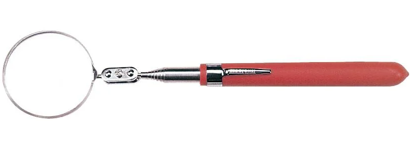 Teleskopisk inspeksjonsspeil med leddet hode og lommeklips.