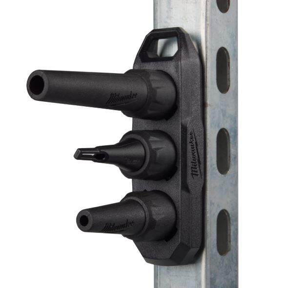 Tre munnstykker inkludert (6 mm, 10 mm og et pumpe-munnstykke) montert på en magnetisk holder