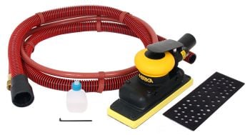 Mirka pneumatiske planeslipmaskiner er ergonomisk utformet for å garantere brukeren komfort og er konstruert av lett, high-tech kompositt materiale som gir enestående styrke og holdbarhet. Mirka pneumatisk planeslipmaskiner har blitt utviklet spesielt for sliping med Mirka revolusjonerende Abranet, et slipenet designet for støvfri sliping. Mirka OS 383CV er ideell for filler sliping.