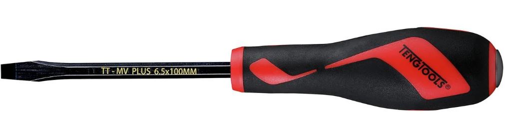 Skrutrekker med gjennomgående sekskantet klinge av TT-MV PLUS stål og med slagkappe.