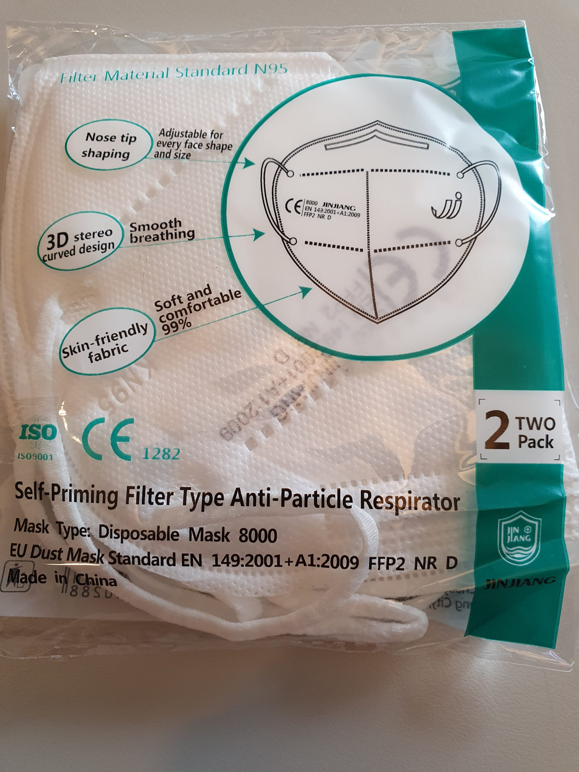 Samsvarer med EN 149:2001+A1:2009 FFP2 NR D