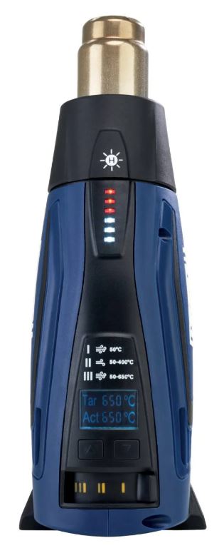 R2200-LCD er en teknologisk avansert og solid varmluftspistol med LCD-skjerm som gjør det mulig å foreta eksakte temperaturinnstillinger i trinn på 10 °C – fra 50 opp til 650 °C. Dette kombinert med den kraftige effekten på 2200 W gjør at du kan arbeide effektivt med de mest krevende oppgaver på flere typer materialer samtidig som du reduserer risikoen for å skade materialet.